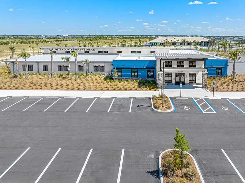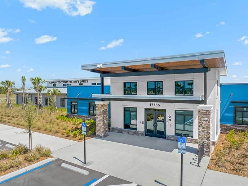 FPC was selected by Charlotte County and Babcock Ranch to construct a new 3-apparatus bay Fire/EMS station and CCSO District office in the growing community of Babcock Ranch. Both stations were designs of previous prototypes adapted to meet the specific needs of the town. The Master Development Order between Babcock Ranch and Charlotte County required construction of the shells to occur under a separate contract than the interiors. FPC completed the shell construction, paused for 30 days to allow for property conveyance, then completed the interiors as a stand-alone project. This was challenging from an operational perspective in the field as well administratively. FPC successfully coordinated all construction activities between multiple owners, architects, and departments.